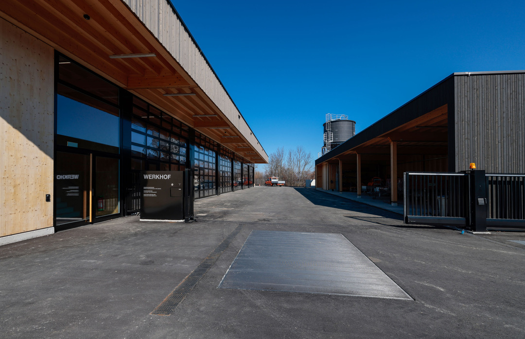 Durch die optimale Setzung der Gebäude wird auf der Parzelle eine Landreserve freigespielt. Die Gebäude sind modular aufgebaut und dadurch einfach zu erweitern, z.B. für eine spätere Vergrösserung des Werkhofs oder einer anderen kommunalen bzw. gewerblichen Nutzung. So wird das Projekt auch dem Bedarf von nachfolgenden Generationen gerecht.