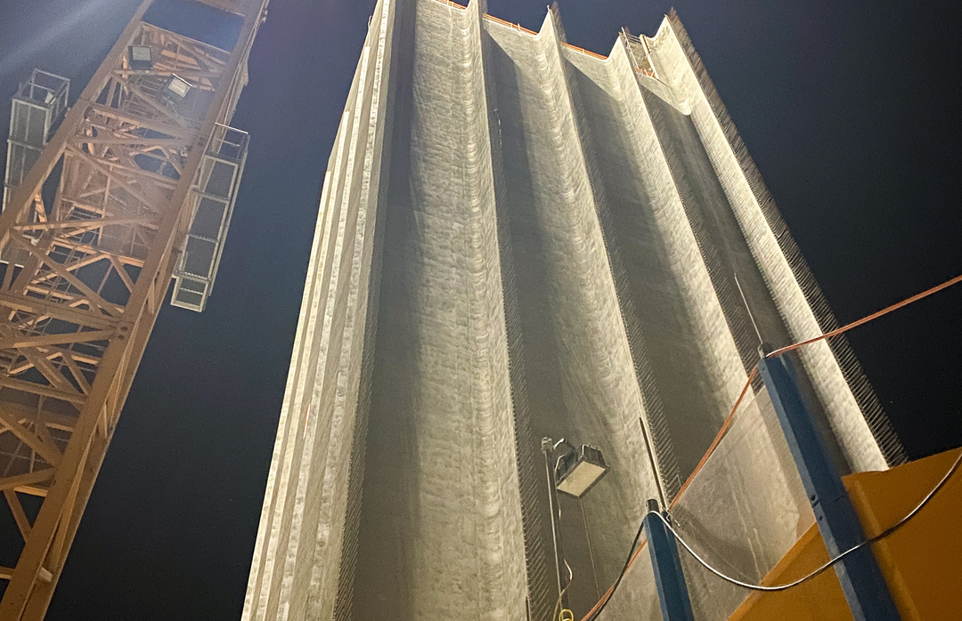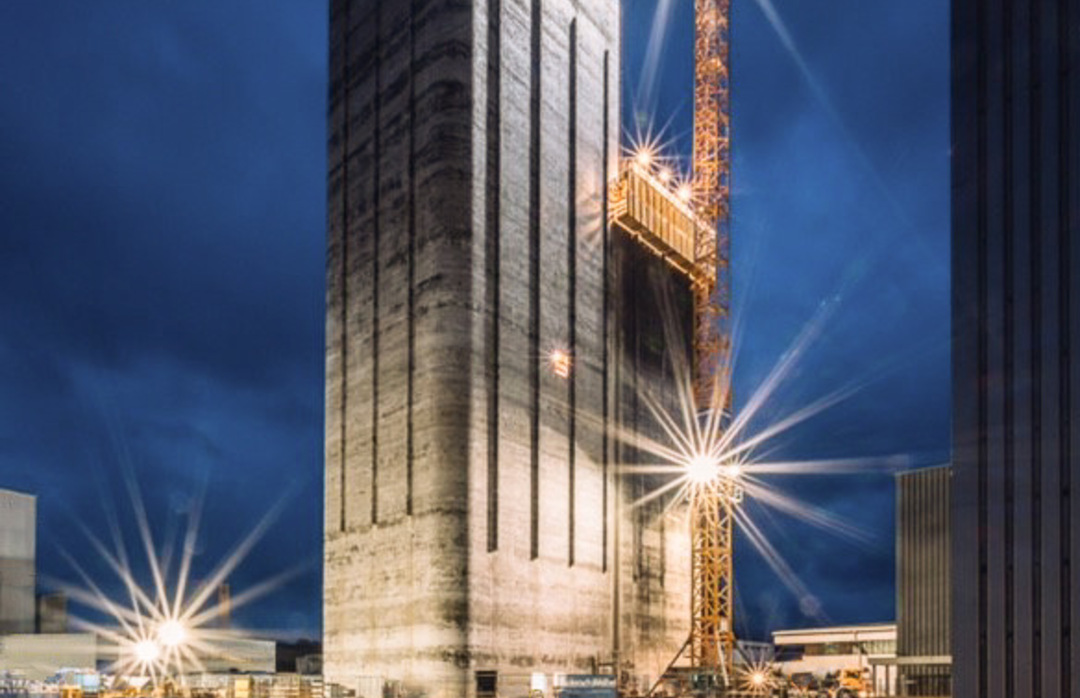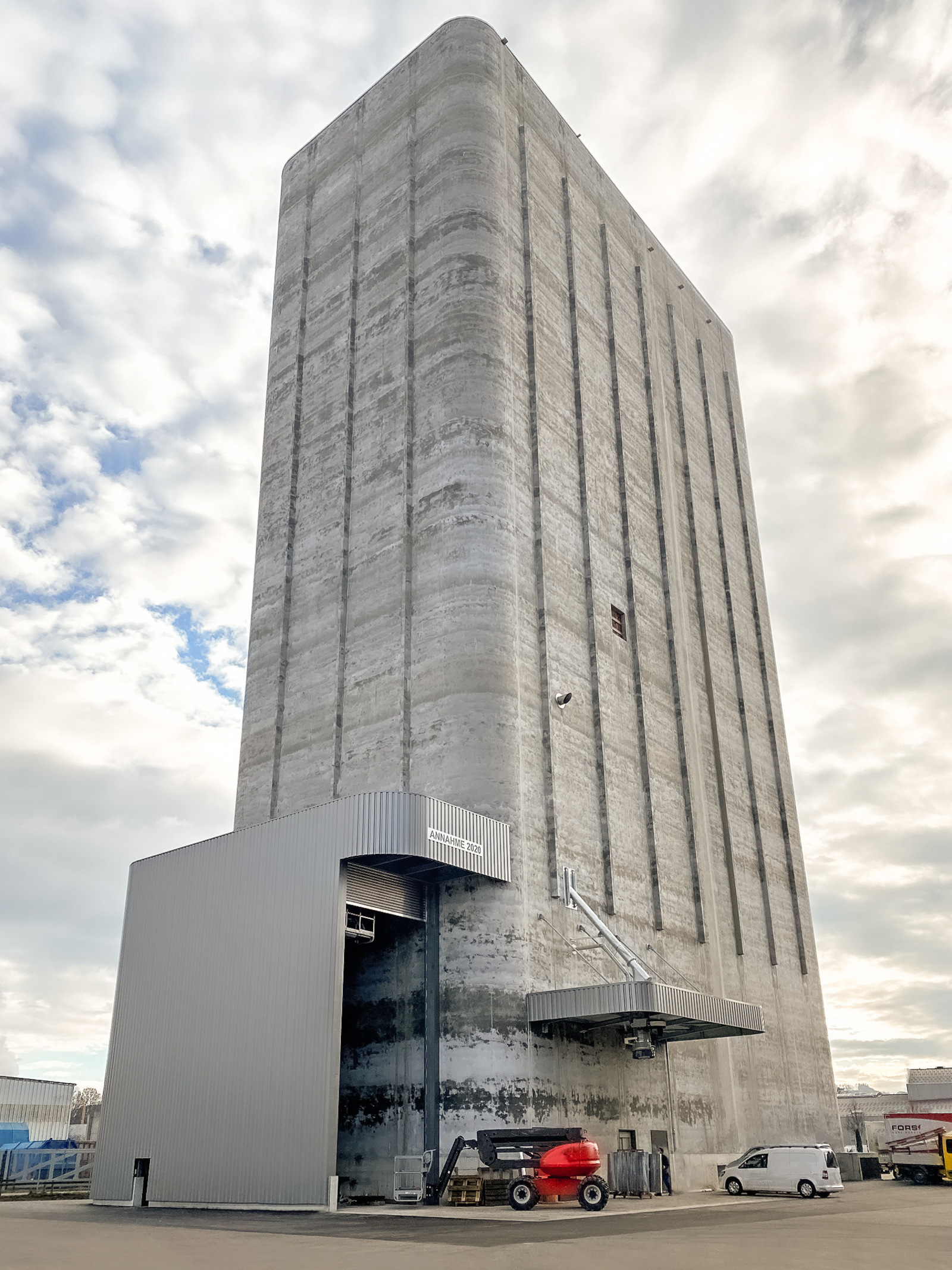 Neubau eines Getreidesilos mit 30 Silozellen im Gleitschalungsverfahren. Erstellen eines unterirdischer Redlerkanals als Verbindung zwischen Neubau und bestehendem Werk.