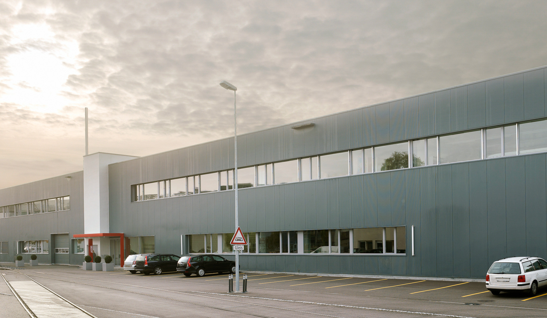 Neubau einer Maschinenfabrik mit Montagehalle, Ersatzteillager, Reparaturwerkstatt, Versuchs- und Entwicklungsräumen und Verwaltung