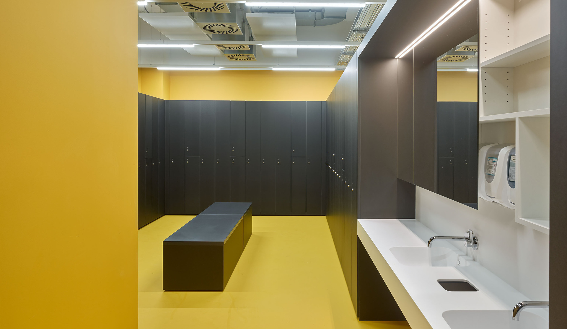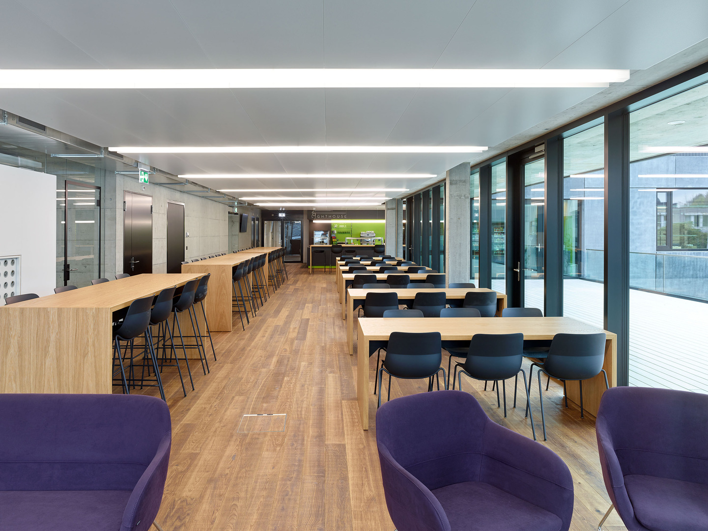 Der Gewerbebau aus den 1970er-Jahren wird zur modernen Produktionsstätte mit Technologielaboren und Verwaltungsräumen. Mit gezielten Eingriffen wird das bestehende Gebäude an die zukünftigen Bedürfnisse angepasst.